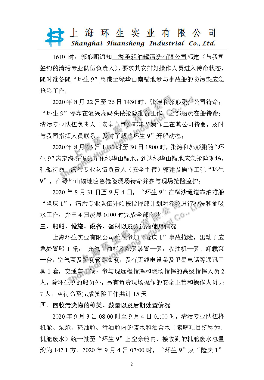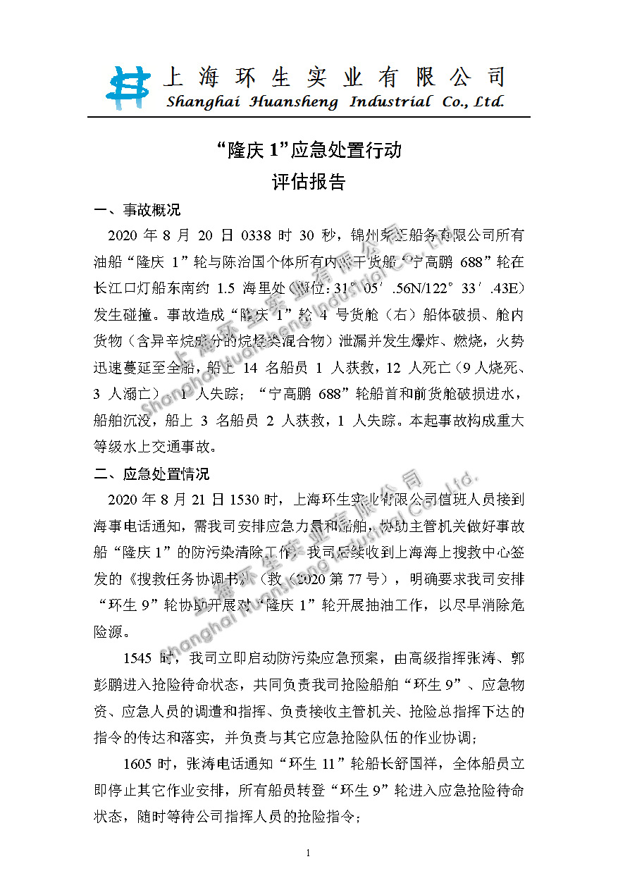 “隆庆1”应急处置行动评估报告